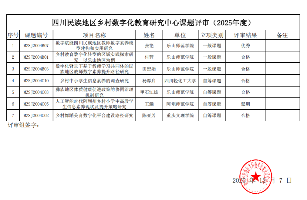 四川民族地区乡村数字化教育研究中心课题评审(2025年度)